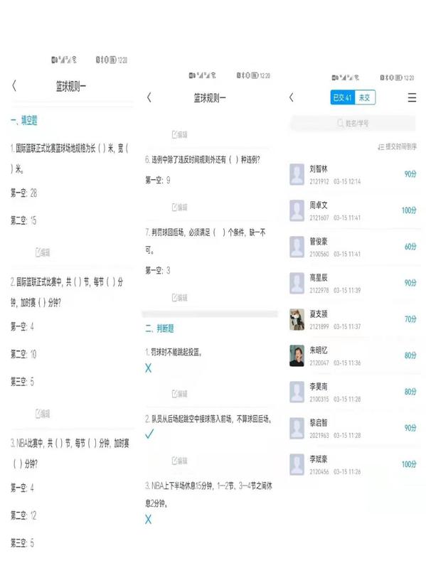 具体地,体育教学部教师通过模拟组建班级,在教师和学生角色中不停转换,力求以最快的速度掌握超星学习通教学平台,尽可能提升线上体育教学质量。线上体育教学前,认真备课,准备课件,提前检查网络、电脑和手机等线上教学工具,提醒学生按时签到。线上教学中,提前利用微信沟通群和班级同学及时沟通,发布本节课的教学内容,发布四周线上体育教学注意事项,在注意事项中充分考虑到特殊情况下学生居住环境可能不同,针对此情况制定了多种锻炼和评价方式,并在课上认真解读,对学生的问题及时解答,保证了每位同学无论处在什么环境下都可以进行锻炼,并且评分标准一致,相对保证了公平原则,打消了同学们的疑虑。除了对体育课线上教学注意事项进行详细解答以外,还对锻炼时的时间、场地、着装等提出了明确的要求,把运动风险降到最低;同时注重课程思政,及时调整学生的心理状态,建议用适度锻炼来改善可能在疫情下出现的抑郁等心理问题,保持良好生理和心理双健康。上课过程中,通过运动世界APP课外任务后台监控,及时了解学生的课外锻炼情况。课后结合本节课内容,安排相关作业,对学生提交的作业及时给予反馈和评价。