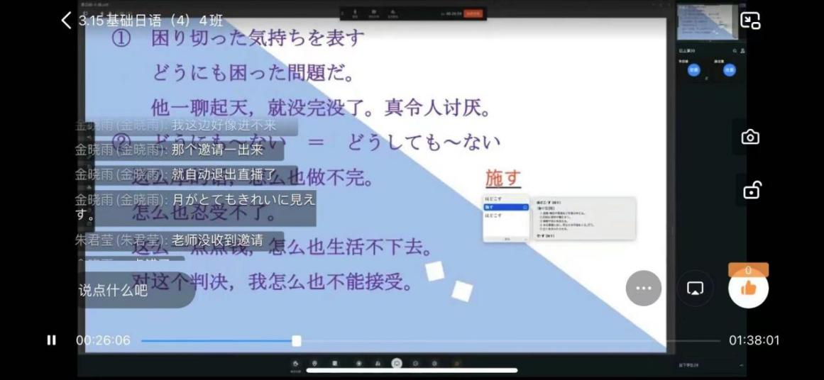 国际教育学院日语教学中心对原线下28门课程均做了线上教学部署安排,教学副院长刘潇滢要求各任课教师保质保量完成教学工作,通过学院以及日语教学中心两级会议,明确职责分工,落实目标任务,细化步骤环节。