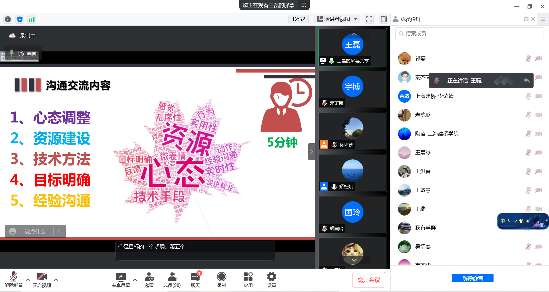 王晨岑书记对于各位教师线上教学过程中做出的努力探索和付出表达了诚挚感谢。她表示,线上教学离不开每位老师的努力付出,老师们在做好自身防疫和线上教学的同时,各系(室)专业老师要充分发挥平台优势,调动学生线上学习的积极性;及时加强与辅导员老师的合作沟通,及时反馈解决学生问题;关注疫情期间学生的心理因素,保证学生身心健康;积极引入课堂思政元素,促进课堂思政建设;同时鼓励各位老师积极开拓渠道,帮助学生顺利就业。