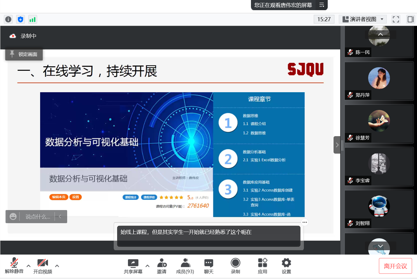 针对线上教学出现的问题,学院邀请了6个系(室)的11位教师分享了在线教学的优秀经验,各位教师结合自身线上教学,从课前、课中、课后三个层面分享了授课过程中遇到的难题和解决方案。上课前,老师们注重课程资源建设,鼓励学生开展自学和预习。例如王磊老师提出课程资源建设要更加新颖,贴近未来学生就业的需求;贾铁军老师利用优质在线课程资源,针对线上教学设计特别的教学方案;胡灿阳老师鼓励学生带着问题进入课堂,注重主动学习的成效。课堂期间,老师们积极探索上课平台优势,注重课堂效果,提升课堂把控能力。例如祁曦老师注重课堂学生参与度,努力发挥学生主体优势;李洋老师增加学生分组讨论汇报环节,调动学生积极性;唐伟宏老师在课堂中用列表式来明确在线学习任务;展召敏老师根据学生学习进度差异向学生布置不同操作任务;余莉老师针对不同的学习群体同样提出了不同的学习要求,真正做到因材施教。课后,每位老师都强调和学生及时沟通,解决课上重难点问题。张景云老师开发新的作业提交方式,保证作业提交质量;陶蓓老师分享了自己独特的作业批改评分模式,及时帮助学生解决课后疑问。学院质量管理办公室主任赵正德教授,以及学院督导石潇老师和吴绍春老师给予了积极的点评。