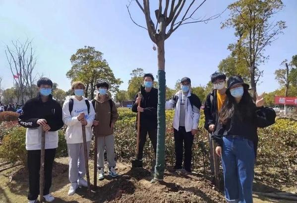完成植树后,师生共同迎来最后一个环节:每个学院领取了属于自己的铭牌,老师们用记号笔在铭牌正面写上学院的标签后,参与植树的同学们也在背面签上了自己的名字并将其挂上了树的枝丫。最后师生一起合影留念,更显植树活动的意义。