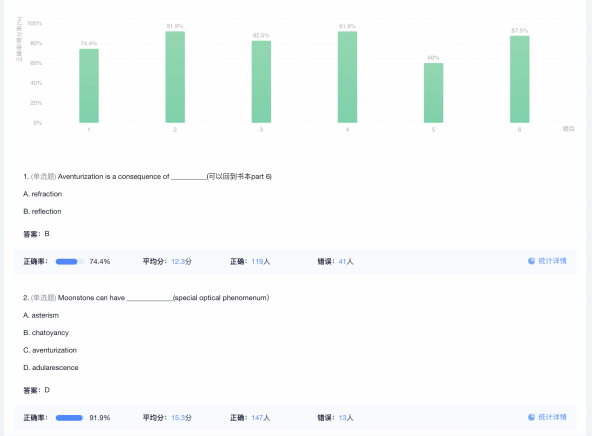 《专业英语》课程总结及改进:在授课中,因考虑到产品专业同学的英语基础扎实程度有限,且能力差距较大,因此选取的提问问题更多较为基本,在问到难度较大的问题时,学生的热情较少,能回答的寥寥无几,因此针对宝石基础知识较难的部分,之后将先用中文为大家复习一遍作提示,然后让学生进行回答,效果会更好。在钉钉群内让学生回答问题的时候,很多学生都是直接采取复制第一位同学答案的情况,因此今后在钉钉群内将更多地以开放性问题为主邀请学生回答,这样答案更多样化,学生才能真正进行思考。