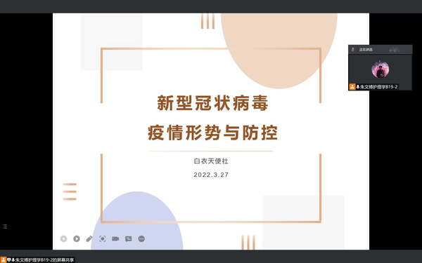 为推进科学抗疫、有效防疫,健康管理学院白衣天使社于3月27日举办了以“科学防护,一起守沪”为主题的线上防疫科普宣讲会。宣讲会针对新型冠状病毒的鉴别及预防、核酸采样检验流程及抗原自测流程等方面进行宣讲。
