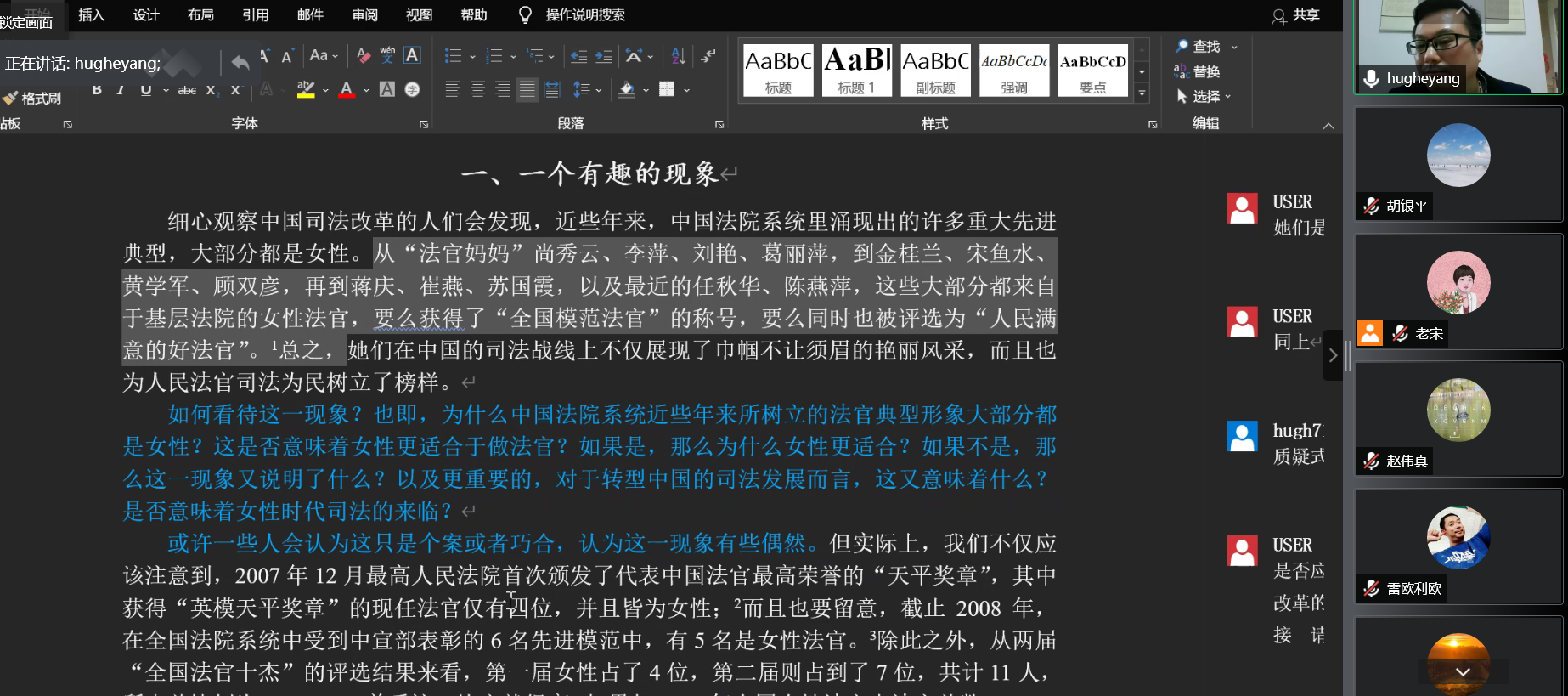 最后,杨嵘均教授以自己的文章为案例,详细剖析了文章的转、承、启、合与文章的内在逻辑关系并对马院哈龙老师提交的文章进行了点评,就论文如何修改提出了中肯的建议。