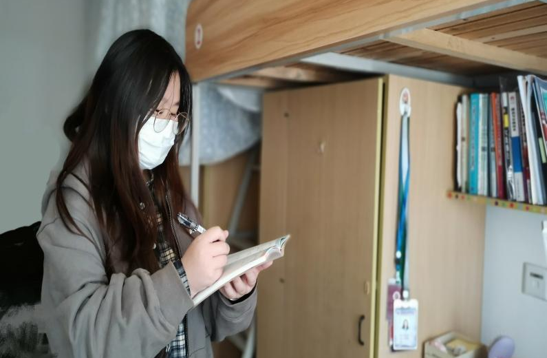 预备党员周思岑分享了自己在校期间,身兼数职参与学校及学院各项防疫工作的经历。作为班级的就业委员,她协助辅导员持续更新计应19-3班的就业摸排情况;作为南二核酸检测负责人之一,她核查南二宿舍楼留校学生人数,并按照寝室逐个督促学院南二学生进行核酸检测;作为学院43期高党培训班班长,她及时完成党校部安排的工作,组建了国教高党学员群,并提醒各位学员做好准备,迎接高要求、严管理的学习。她表示疫情防控任务艰巨,每一个任务都不是小事,作为一名预备党员更应当展现自我的价值与担当。她将会牢记习近平总书记的嘱托,奋进新时代,让青春在为人民、为社会的奋斗中焕发出更加绚丽的光彩。