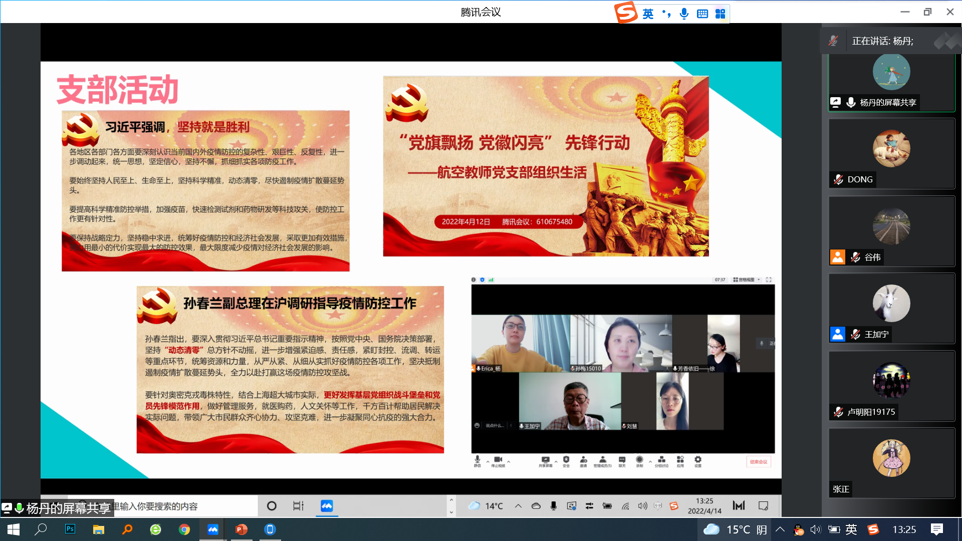 航空教师党支部书记杨丹表示,支部党员在疫情防控期间涌现了多项先锋事迹,有资深老党员在校园准封闭管理后一直常驻校内,一个多月从未离开。也有行政、党建工作一肩挑的,既带领大家钻研线上教学,又带领支部党员党史学习、履行责任。也很多老师在完成线上授课之余,投身社区志愿者活动。也有党员不顾之前受过的腰伤,积极投入到小区的志愿者服务中。航空教师党支部将继续充分发挥党支部的战斗堡垒作用,动员组织党员积极发挥先锋模范作用,为打赢疫情阻击战作出贡献。