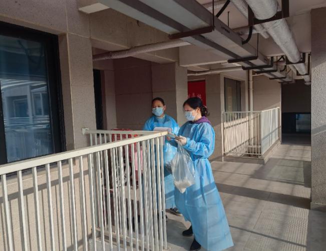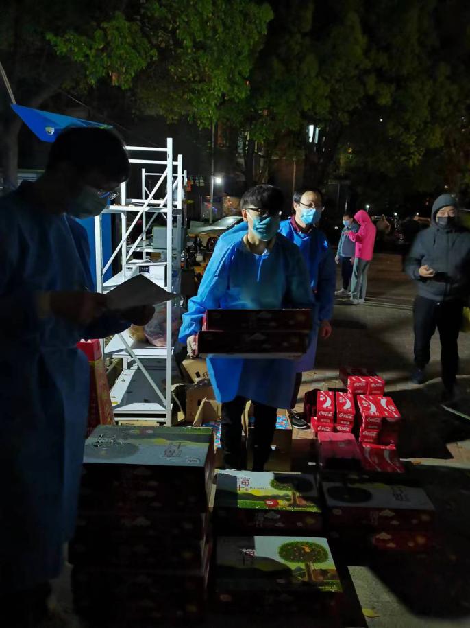 蒋中云老师与志愿者队友一起发放抗原检测物品