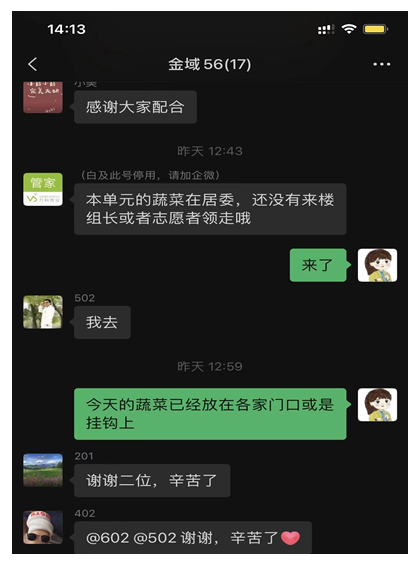 此次疫情,支部书记朱丽娟老师感触颇深。由于小区缺乏防护服,有时不能参加楼栋外的志愿者活动,但可以在楼栋内参与物品分发工作。同时督促大家非必要不外出,减少传播和接触病毒的风险。“我们所有的努力都有一个共同的目标,早点战胜疫情,一切恢复正常!”