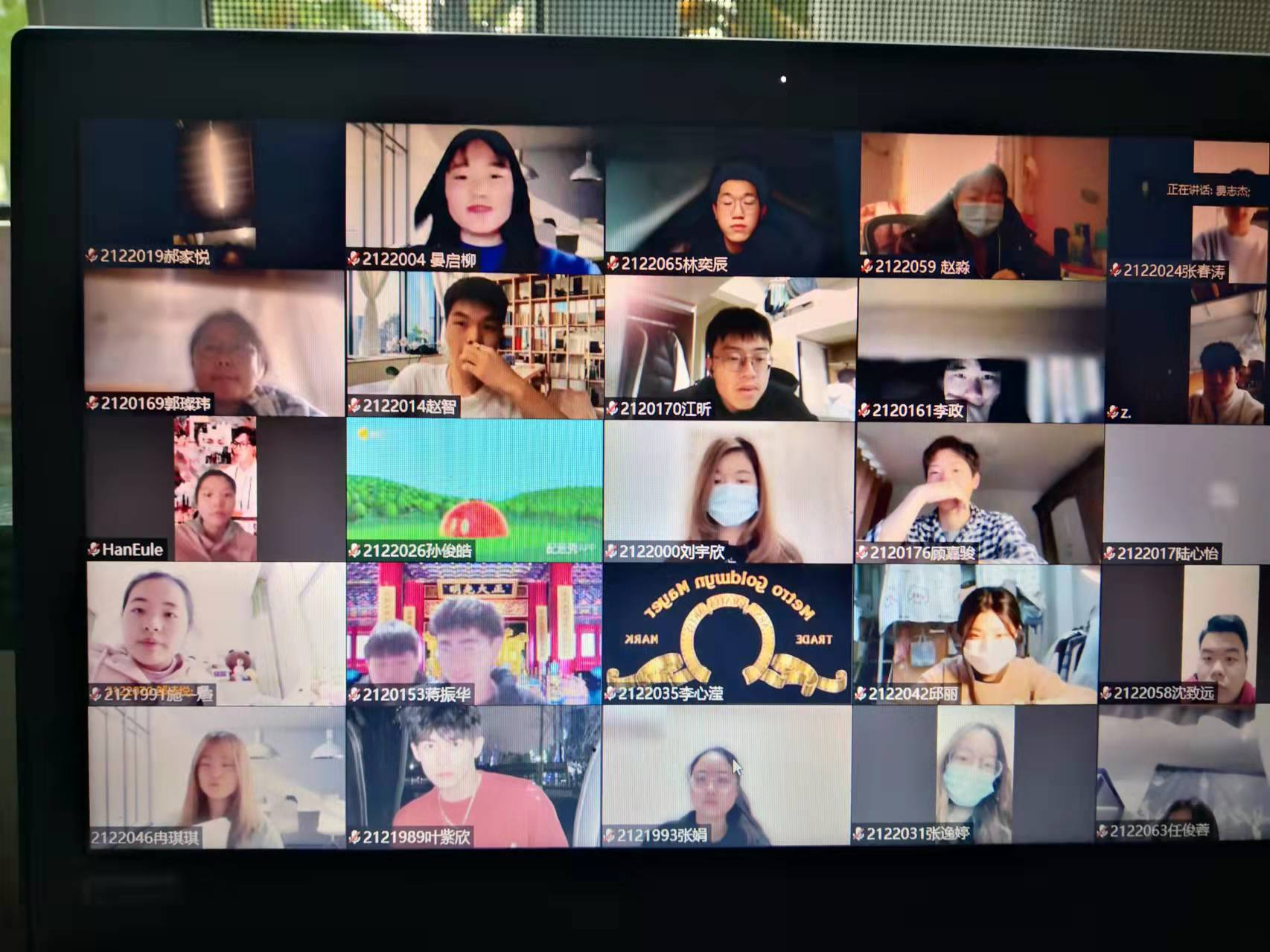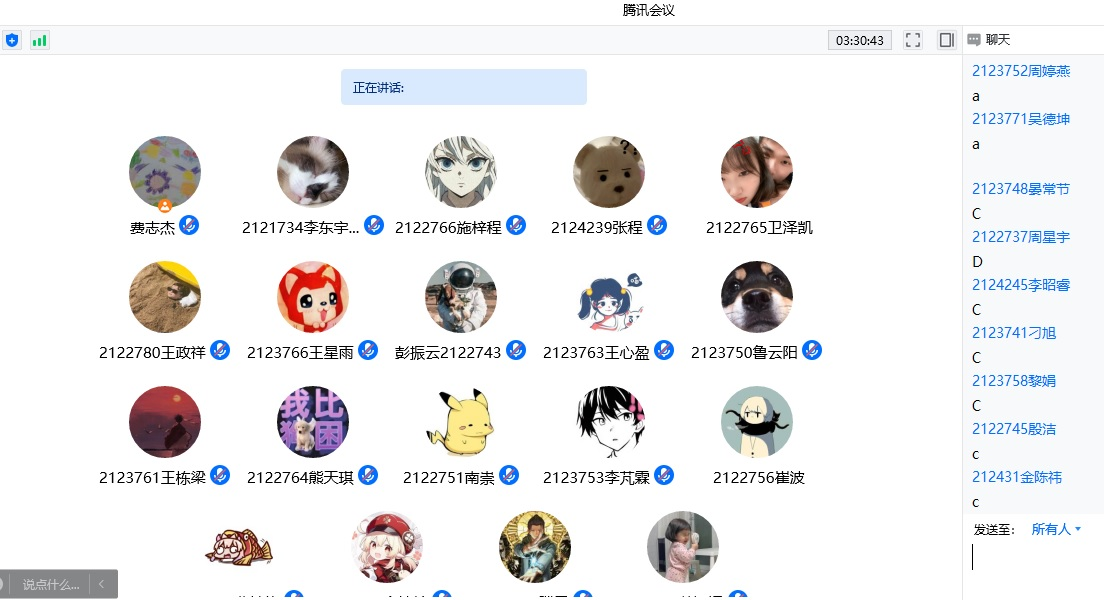 云端互动,注重学生学习状态。针对网课内容及前次课内容,费志杰老师抽点学生回答问题,带领全班同学进行前后知识点衔接,当抽点学生未给出正确答案时,开放给全班同学抢答,为第一个提供正确答案的同学给予一定分数。还通过教学互动,调整学生的学习心态,增强学生的学习效果,确保学生随时在位。另外,为增加教学互动的亲切感,费老师课中会适时组织一次云端合影,了解学生封控时期的状态,同时增进师生友谊。