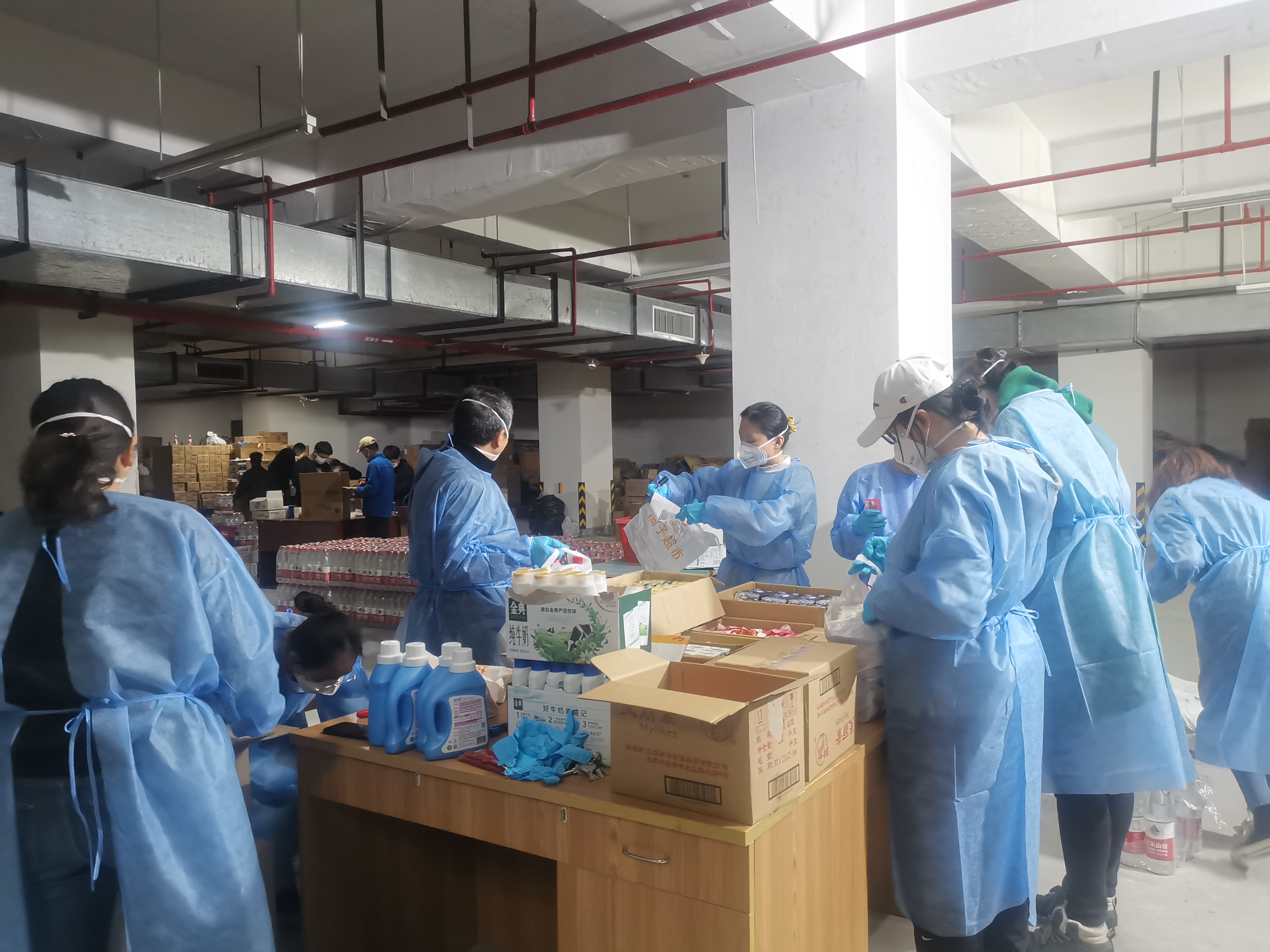 4月17日下午,艺术设计学院在校临时党支部冲锋在前、精神饱满,开展为学生分拣、打包、配送生活物资先锋行动。临时党支部的全体党员穿上防护服,戴上口罩和手套,清点物资、做好标记、分拣包装、逐个打包,纷纷变身“分拣员”,开启了“流水线作业”,对面包、牛奶、饮用水、纸巾、洗衣液、洗发水、牙刷、牙膏、垃圾袋等20余种生活物资进行分拣打包。这场历时4小时的组织生活,为北3、南5、南10、南12学生宿舍及留学生公寓配货总计达802单。
