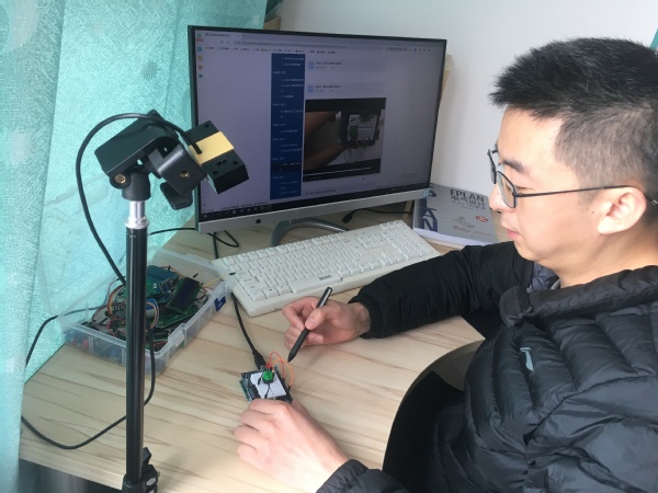 董嘉伟老师表示,开学没几周,这突如其来的疫情,打乱了所有人的脚步,甚至还没来得及整理办公室,老师们就被通知无法返校,还好有过前年的经验教训,大家迅速建立起一整套线上授课方案。疫情期间,董嘉伟老师主动坚守岗位,驻扎在机电学院实验室,确保实验室无安全问题发生,同时网络授课也不耽误,认真做好做全课件,丰富课程视频,努力让学生获得和线下上课相同的体验。