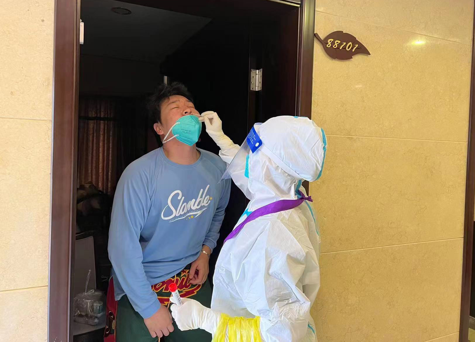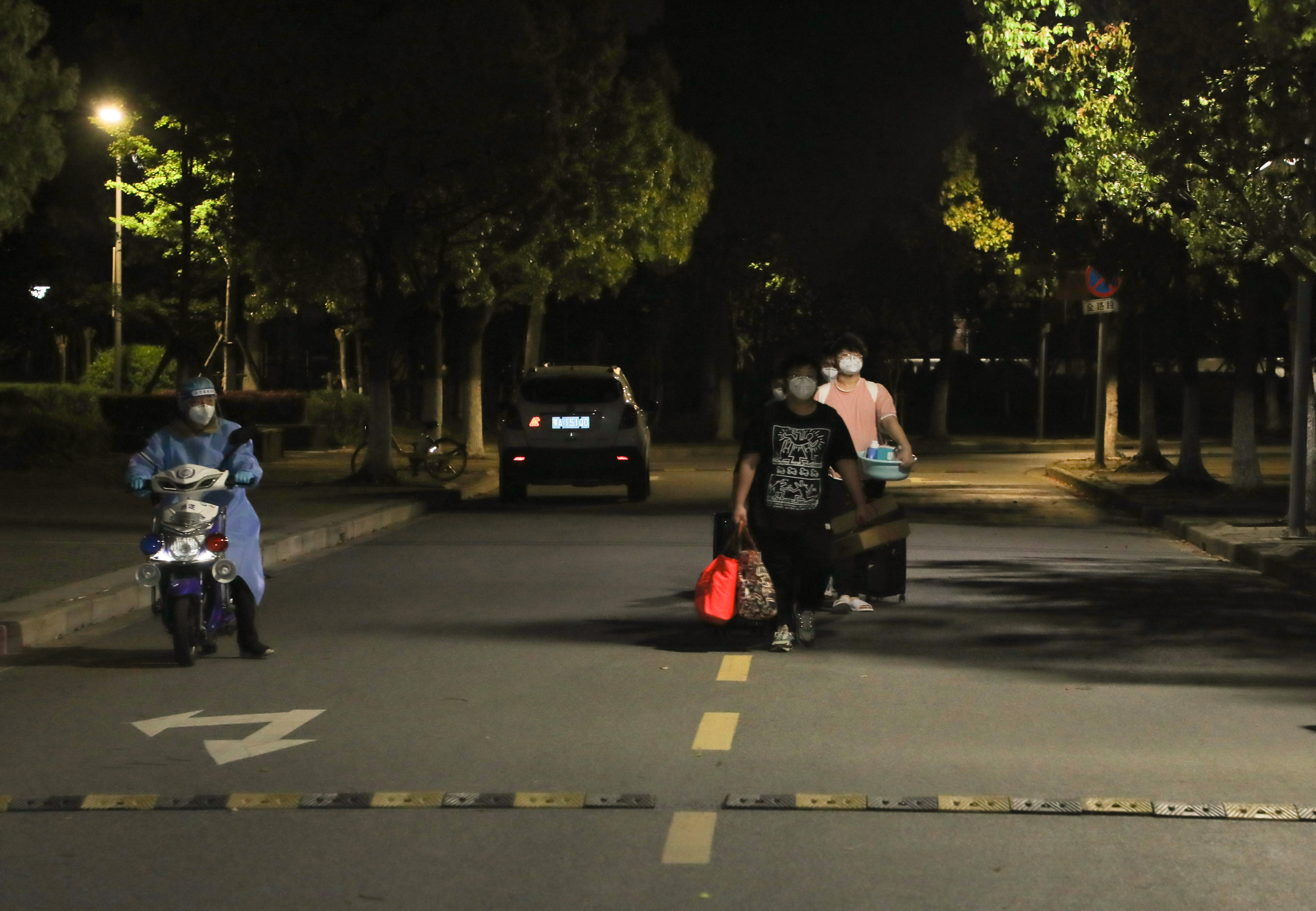 医务人员耐心地帮同学们做好消杀,安保人员为其保驾护航,学院书记陪伴着同学们回到熟悉的宿舍。