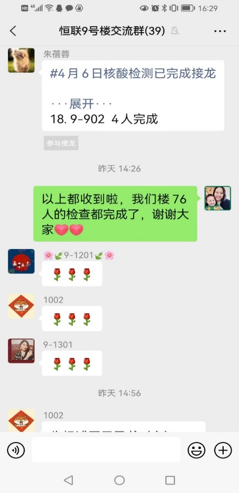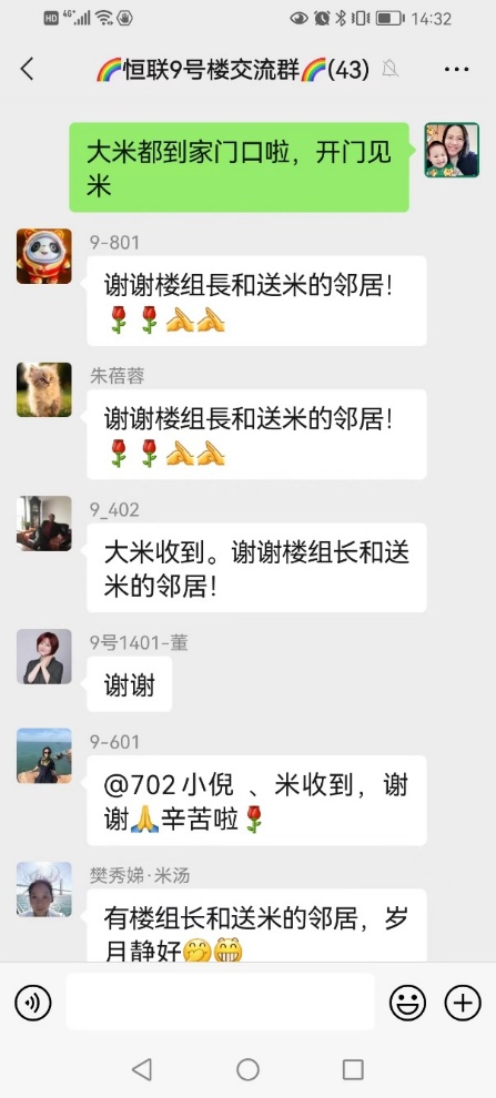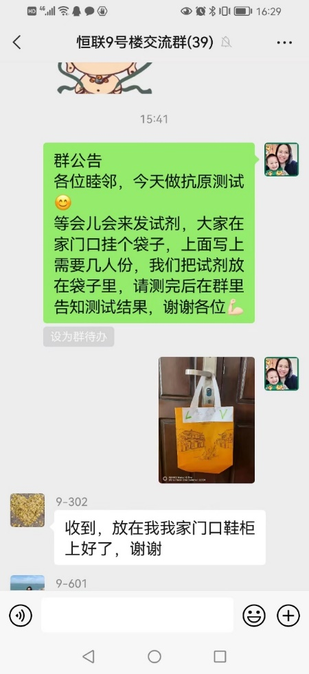 图2 童年老师担任楼组长,组织楼栋抗原检测及发放政府生活物资