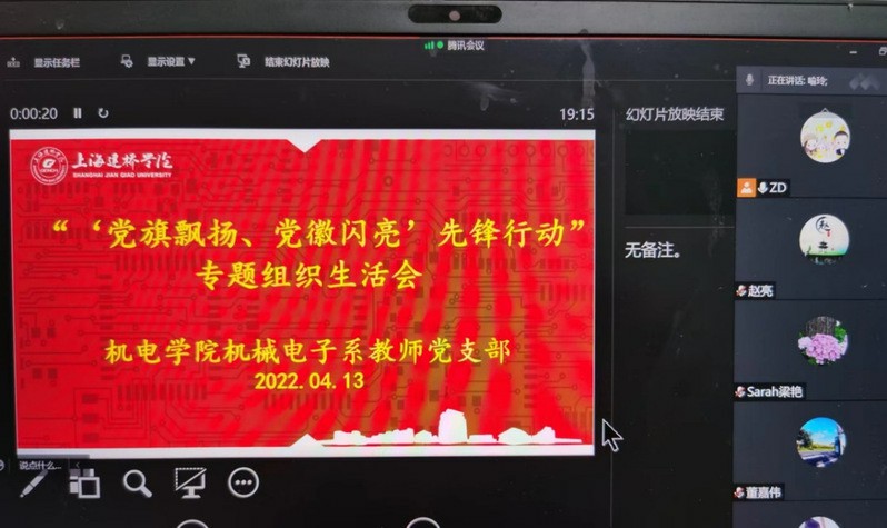 疫情初期,机械电子系教师党支部书记张迪第一时间主持召开线上组织生活会向全体党员传达集中学习《致全市共产党员的公开信》、《致全市共产党员的一封信》及“五个讲清楚”。张迪书记动员全体党员应成为疫情防控的中流砥柱,要深入基层,深入群众,发出好声音,传播正能量,扛起特殊责任,拿出特殊担当。机电学院党委副书记马秀娟也呼吁党员教师务必积极亮身份,冲锋一线为疫情防控贡献自己的力量,共同守“沪”,打赢这场硬仗。
