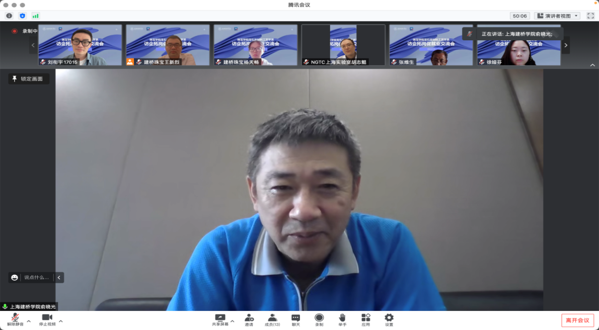 会上,刘衔宇院长首先代表珠宝学院感谢国检集团(NGTC)对学院人才培养和就业工作的关心和支持。他对今年3月24日珠宝国检集团在北京的成立致以热烈祝贺和美好祝愿。他表示NGTC一直是行业的国家队,有着检测、评估、教育培训、科学研究、技能鉴定等诸多的业务板块和品牌矩阵,建桥珠宝学院作为华东唯一的一所提供珠宝专业本科教育的珠宝学院和一家以培养为珠宝、时尚、奢侈品以及艺术品行业的应用型本科复合型人才的行业学院,和NGTC上海实验室之间的联系也是由来已久——从建院之初持续至今。今天的线上会谈不仅是意在当下的拓岗,而是真切希望在未来培养人才的过程中能和政企行校之间进行合作交流,使针对教育教学过程中的不足进行不断提升和优化,让学院的珠宝人才培养为地方经济和珠宝行业发展作出更大贡献。