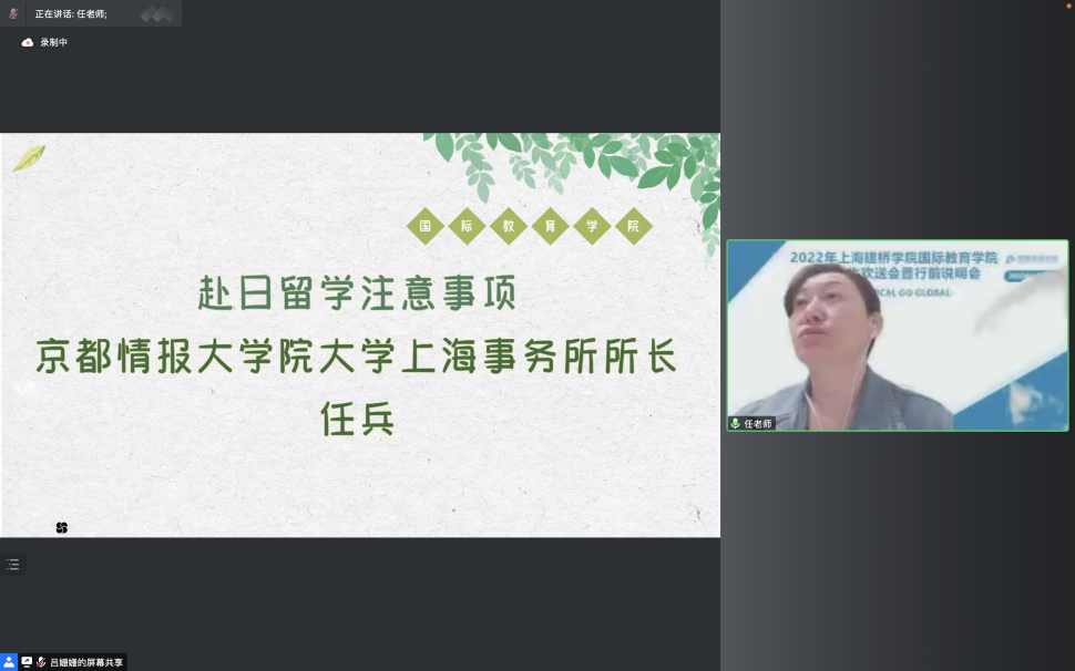 京都情报大学院大学上海事务所任兵所长从赴日材料准备、赴日学历认证等方面向大家详细介绍了赴日留学注意事项,并表示日方学校会帮助同学们安排好抵日后的相关事宜,帮助大家顺利开展好在日留学生活。