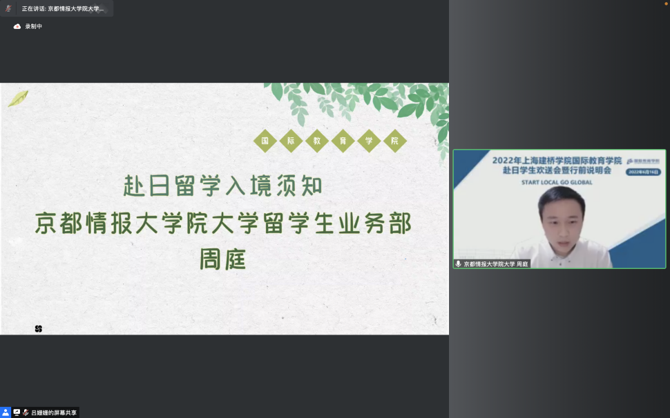 京都情报大学院大学留学生业务部周庭老师向各位同学详细讲解了入境注意事项及入境流程,并祝大家顺利入境,开启留学新篇章。
