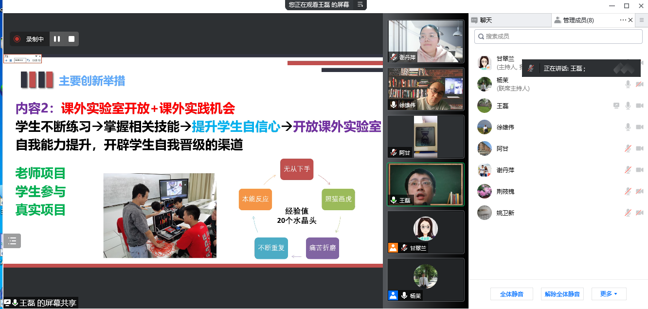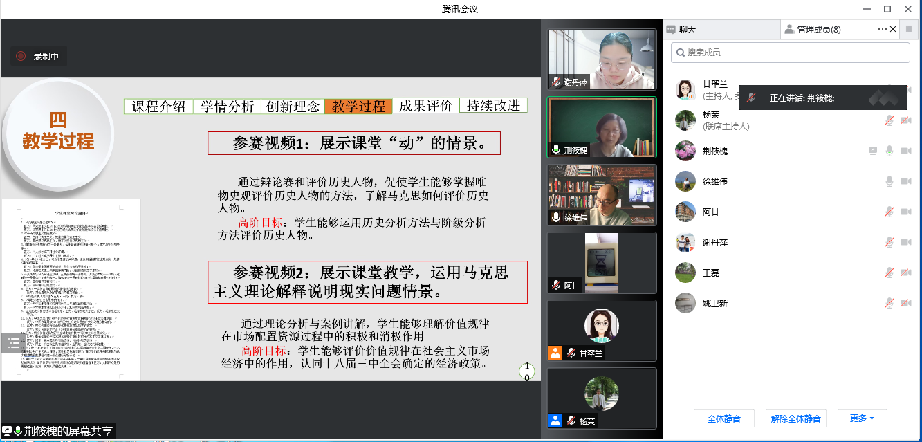 竞赛准备阶段,教务处教发中心紧锣密鼓对参赛教师展开培训,组织教师参加了复旦大学2021年创新教与学线上研讨会;观看学习安徽省教创赛启动会上超星集团赵玉霞老师关于“教学创新大赛课堂实录教学设计与拍摄要点”的讲座;邀请专家对参赛教师的教学创新成果报告、教学设计及教学PPT进行针对性指导;请专家在线指导教师现场教学创新设计汇报。