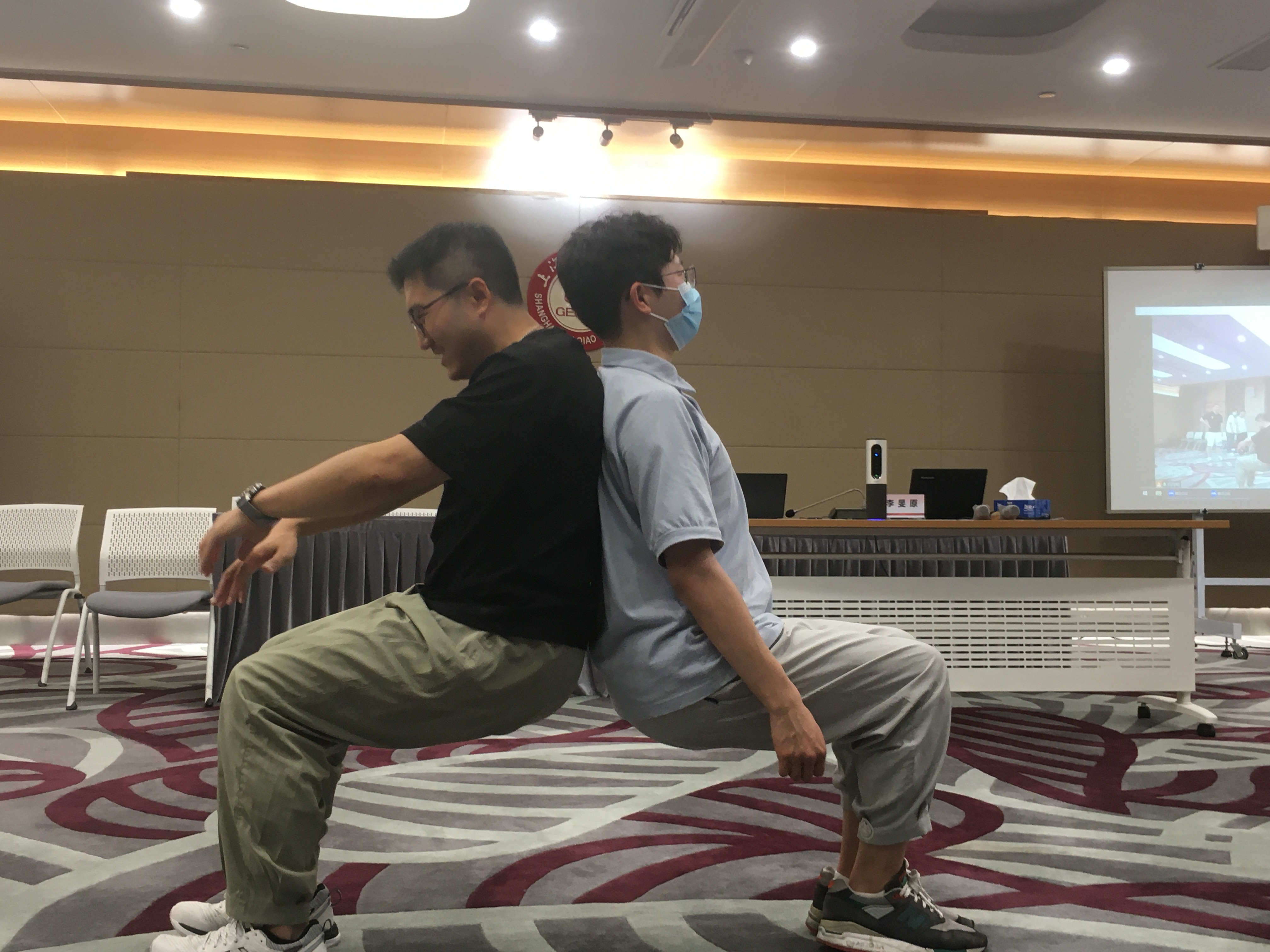 四天的培训,由上海戏剧学院副教授李旻原博士讲授。第一天的培训,上午进行理论讲授,下午进行体验,理论部分讲授了戏剧的基本概念和教育性戏剧的理论以及戏剧与心理健康的关系;下午的体验,主要是让学员对自己的身体增加觉察,并训练身体的感受和身体在空间的感受。后面三天的培训,都是通过戏剧游戏的方式,进行体验。第二天,主要通过声音和音乐进行游戏;第三天的游戏,将戏剧治疗的五个阶段逐层推进;第四天,在总结前三天培训内容之后,通过戏剧游戏,进行语言训练和身体灵活性训练。