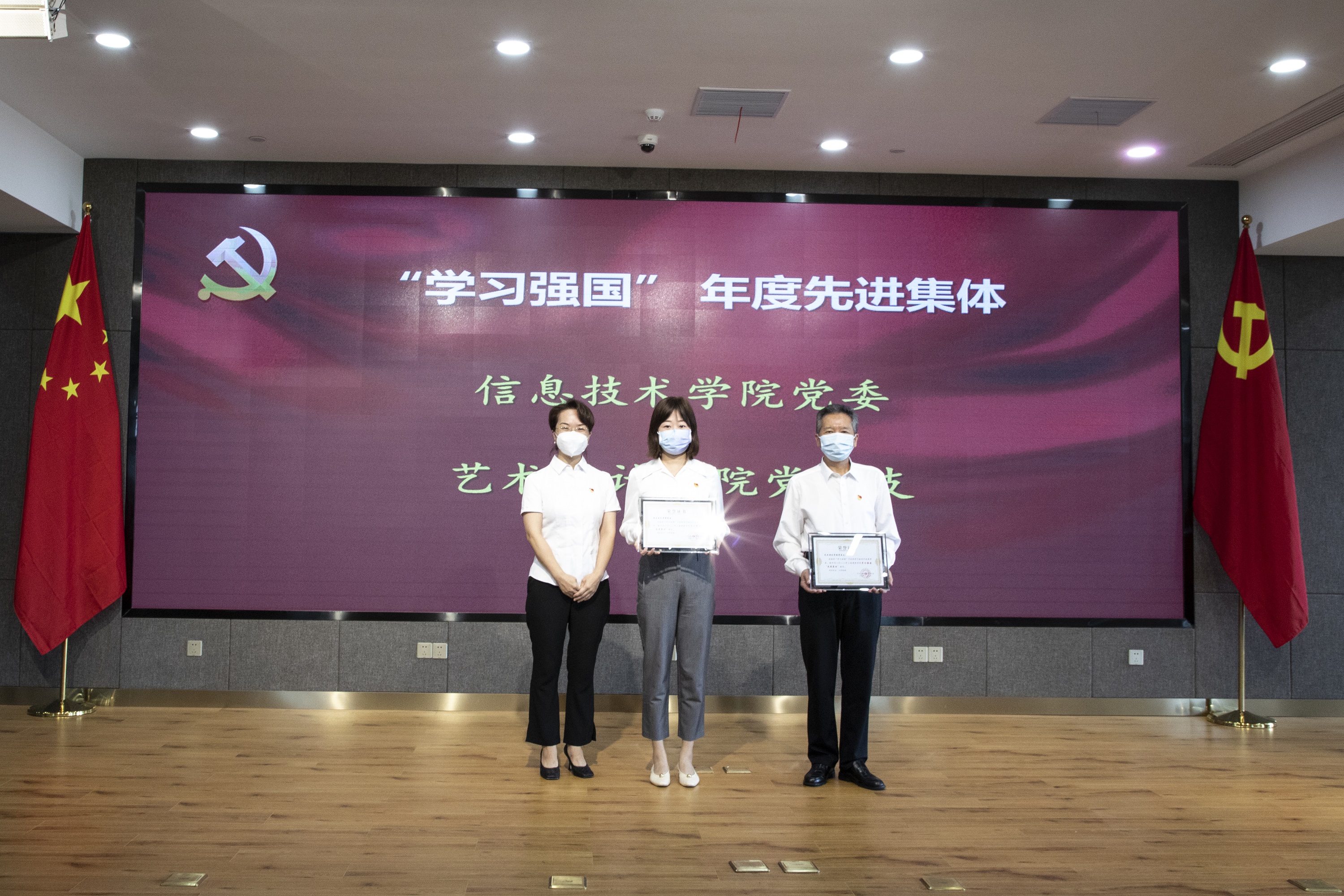 陈伟副校长为“学习强国”优秀个人及先进集体颁奖。经校党委研究,评选出陈扬等60名同志为年度学习优秀个人,信息技术学院党委、艺术设计学院党总支为“学习强国”年度先进集体。
