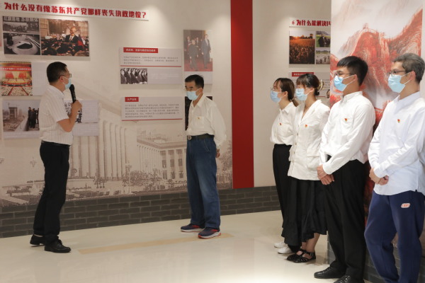 在建党101周年之际,7月6日下午,我校党委组织党员在校国政馆、雷锋馆和党建育人馆举行重温入党誓词活动,追忆红色历史、传承红色基因,感悟初心使命、汲取奋进力量。校党委书记江彦桥,党委组织部副部长施荣瑜以及2020年和2021年在我校发展入党的20名教职工党员参加宣誓活动。
