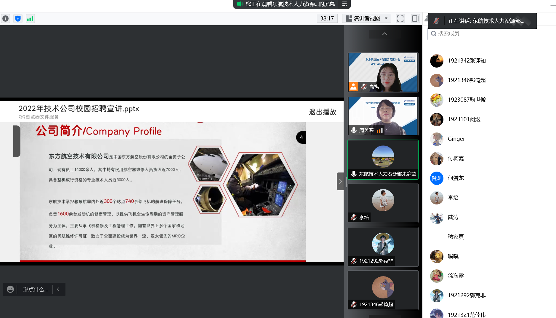 本次宣讲会,合作企业东方航空技术有限公司不仅给2022届尚未就业的毕业生提供了工作机会,也为我院2023届毕业生开了首场宣讲会,帮助学院进一步落实就业工作。接下来,我院将继续通过线上线下相结合的方式邀请更多的合作企业开展实习就业宣讲会,为学生提供更多选择,助力学生高质量就业。(供稿:国际教育学院)