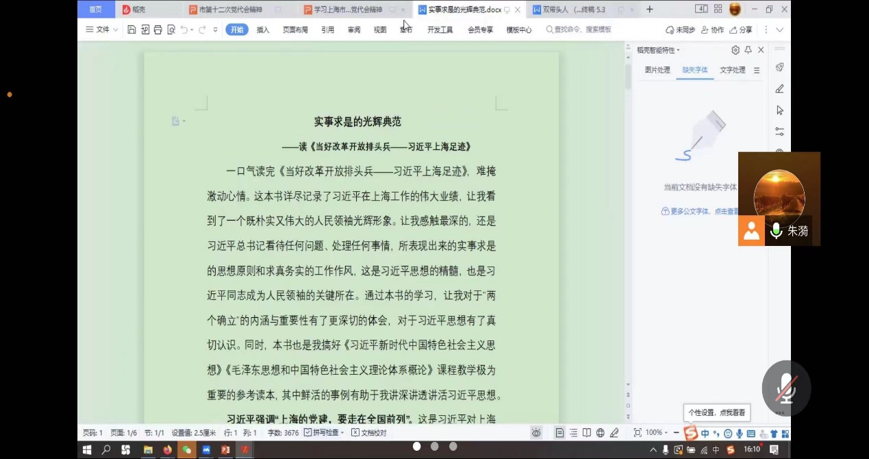 通过学习,全体党员一致表示,要创新教学方法,把习近平在上海的工作实践经验,作为最鲜活的教学案例及时引用到思政课教学中去。蒋成凤同志与马可可同志专门分析了如何设计教学案例讲好习近平思想的思路与对策,朱漪同志专门对照《马克思主义基本原理》教材相关章节,谈了如何对接习近平上海足迹读本的建议,强调了要从阐述习近平人民领袖的风采特质角度,讲好“群众与领袖”相关章节知识。两位新加盟的年轻党员杨健同志和申晨同志,富有朝气和锐气,专门撰写了书面发言稿,作了高质量发言,表达了“勇担新使命,奋楫过千帆”的奋斗志向。办公室主任詹静芳老师表示,要学习习近平求真务实的工作精神,全心全意做好马院行政管理工作。总之,这是一次精神振奋、认识深刻、贵在行动的学习交流会。