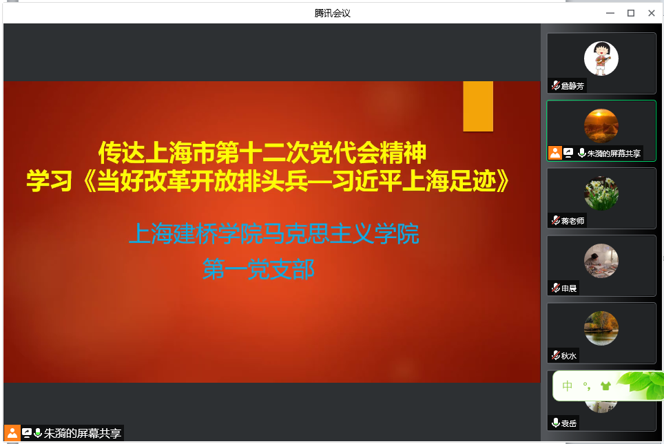 7月23日,马院第一党支部召开党支部会议,传达领会上海第十二次党代会精神,交流《当好改革开放排头兵——习近平上海足迹》学习体会,统一认识,振奋精神,明确任务,再立新功。