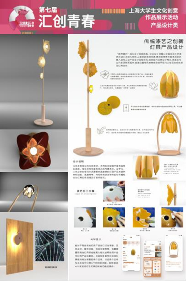 二等奖获奖作品《“漆光”传统漆艺之创新灯具产品设计》曹林珂 指导教师:叶明伟
