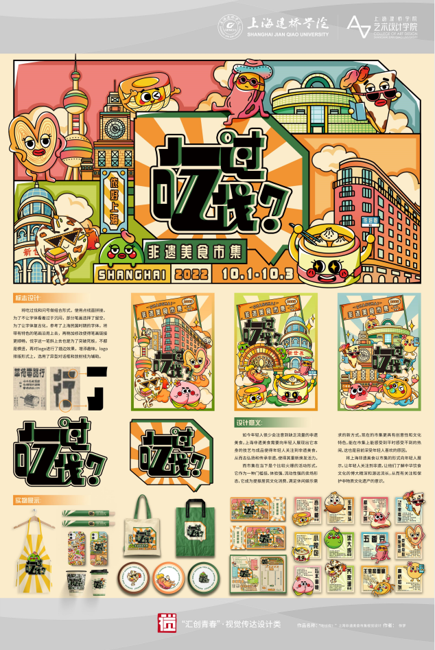 一等奖获奖作品《“吃过伐?”上海非遗美食市集视觉设计》徐梦 指导教师:俞旻琦