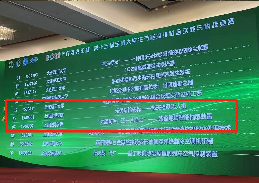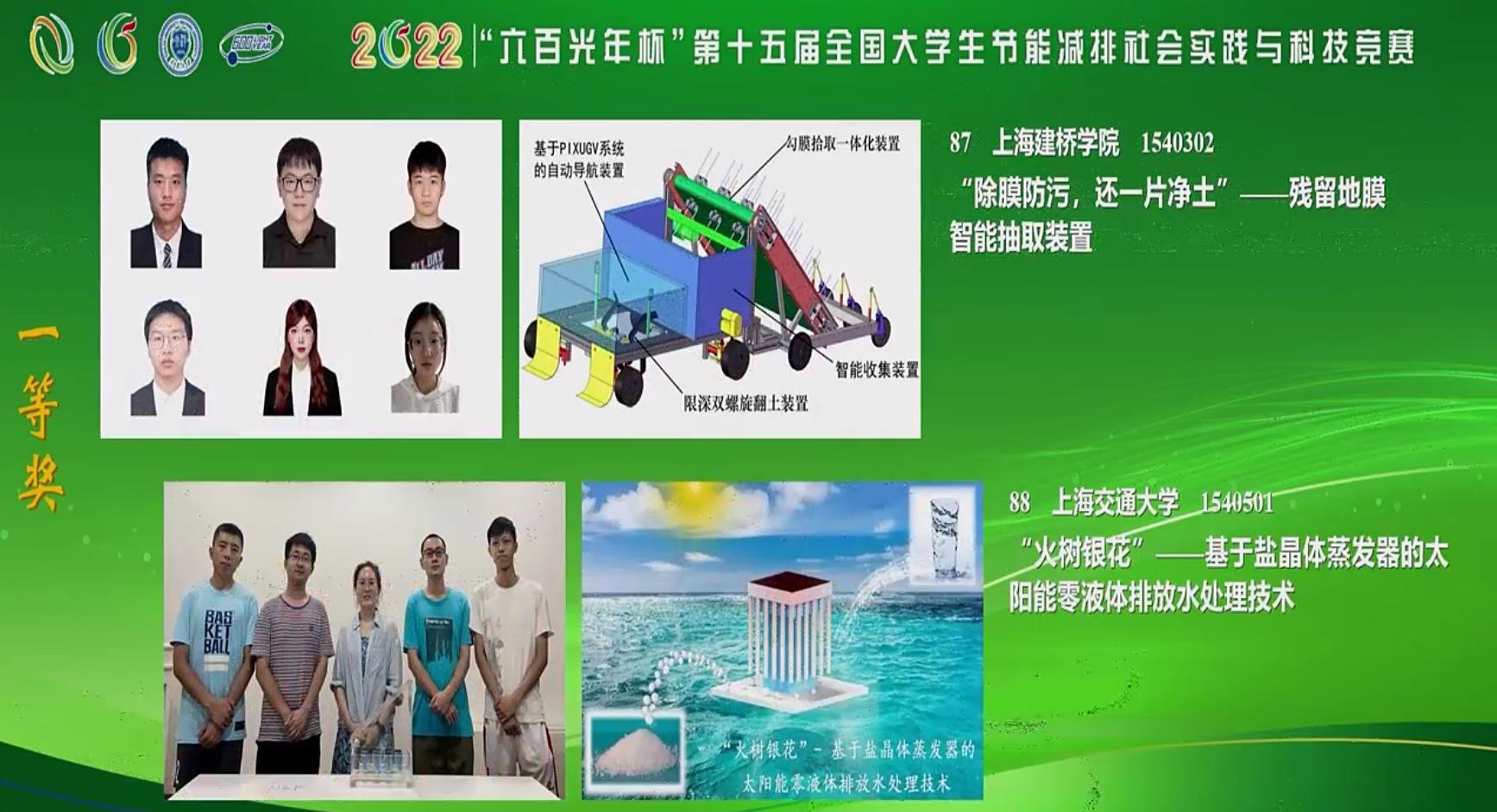 8月2日至5日,由教育部高等教育司主办,天津大学承办的2022年“六百光年杯”第十五届全国大学生节能减排社会实践与科技竞赛决赛成功举办。我校学子在本届大赛中创历史最佳成绩,共斩获全国一等奖2项、三等奖1项,上海建桥学院获优秀组织奖,同时上海建桥学院为唯一获取一等奖的民办大学。