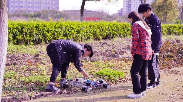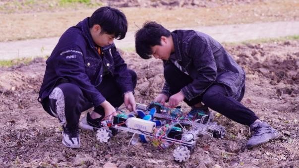 来自机电学院团队(乔永超、蔡轩龙、胡桓滔、王柯、顾益嘉、段晓楠)设计制作,潘铭杰、杨茉、李孝琛老师指导的“除膜防污,还一片净土——残留地膜智能抽取装置”,获全国一等奖。