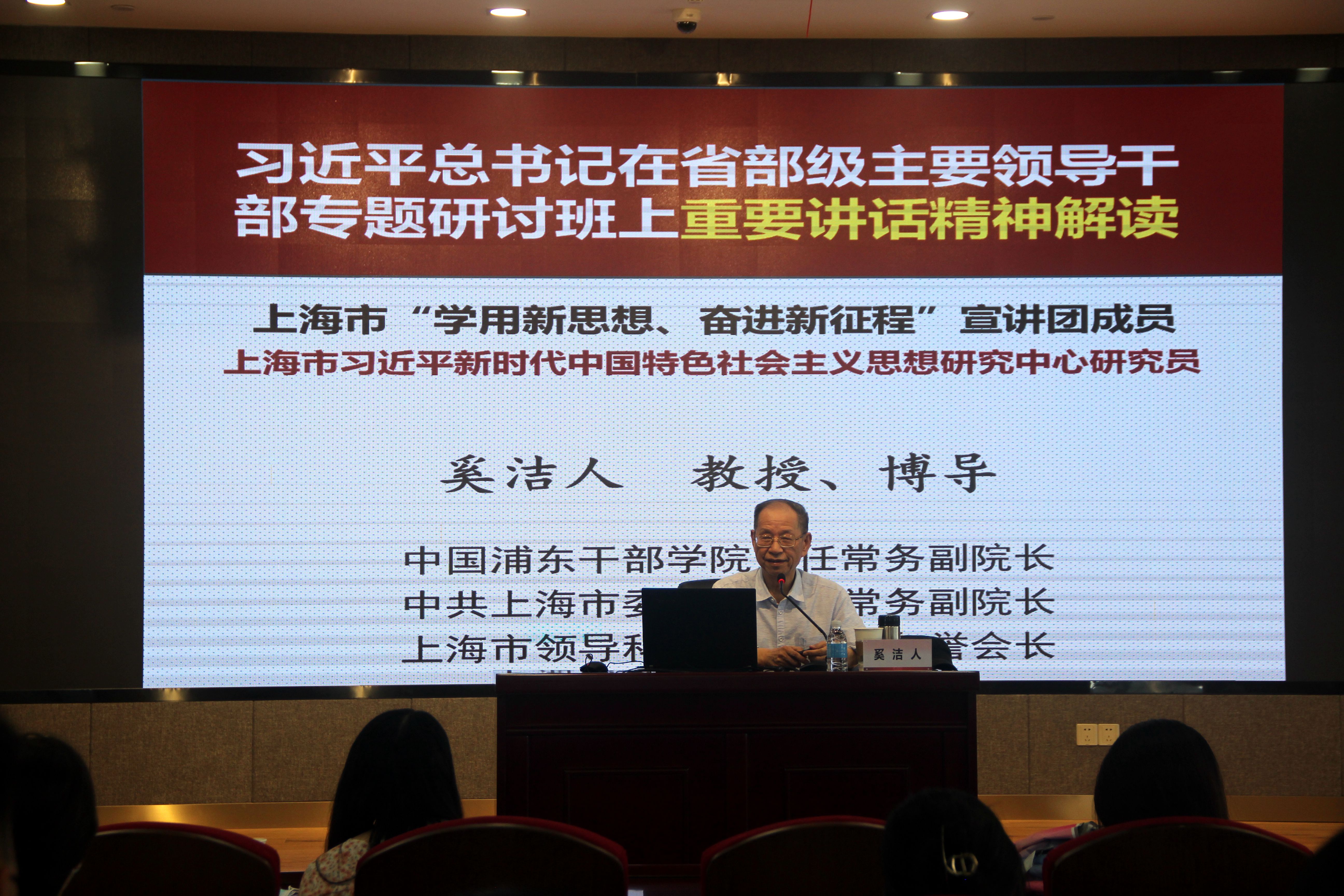 下午,由中国浦东干部学院领导研究院院长、教授、博士生导师奚洁人进行习近平总书记在省部级主要领导干部专题研讨班上重要讲话精神的解读和《习近平谈治国理政》第四卷的学习讲解。奚洁人教授带领学员学习习近平总书记在省部级主要领导干部专题研讨班上的重要讲话精神,他表示,总书记在党的代表大会召开之前发表重要讲话,以统一全党思想,为代表大会的胜利召开奠定重要政治、思想和理论基础,对即将召开的党的二十大具有重大的政治意义和深远的历史意义。通过学习,学员了解了讲话的核心内涵、重大意义和学习要求。讲座下半场,奚洁人教授带领学员学习《习近平谈治国理政》第四卷的主要内容,深刻领会“第四卷”的重大战略思想和原创性观点,把握新时代党的创新理论的世界观和方法论,使更好地运用于高校辅导员工作和党建工作中。