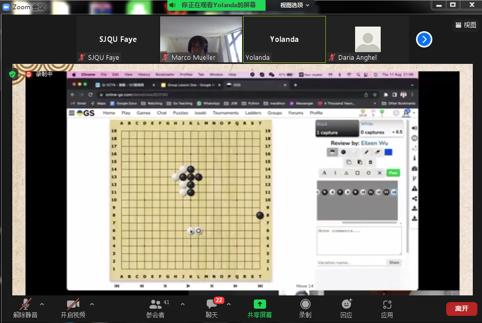 优秀教师代表Eileen Wu表示很荣幸加入本期围棋班的教学团队,她认为开展这个项目对于在欧美国家推广中国传统围棋文化的推广有重大意义。小组全员均从中收获了成长,她也将不断提高自身的教学技能,将教授围棋这一爱好持续下去。