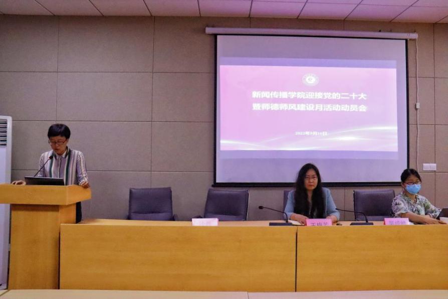 9月16日,新闻传播学院召开新学期全院大会,认真传达贯彻朱瑞庭校长“以学生为中心、以质量为核心、全面提升教学管理服务的学生满意度“的报告精神,同时开展迎接党的二十大师德师风建设总动员。新闻传播学院院长王梅芳教授、党委书记徐磊教授、党委副书记吴成皓老师及全体教职工参加。会议在新闻传播学院308会议室举行。