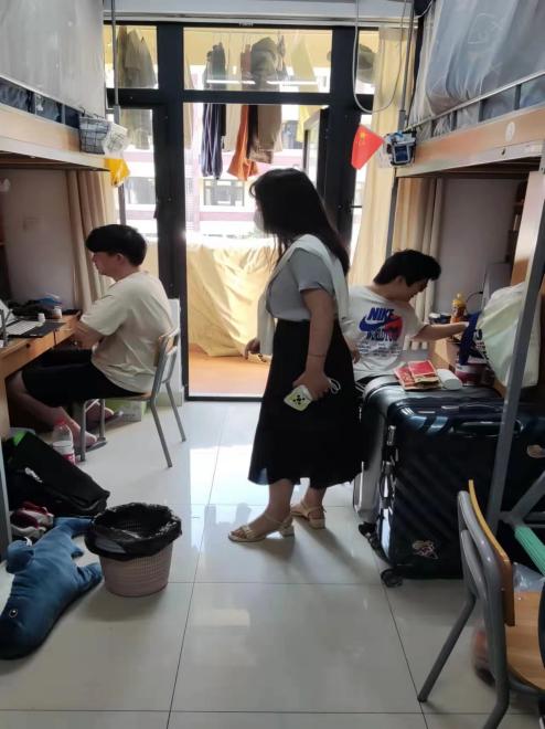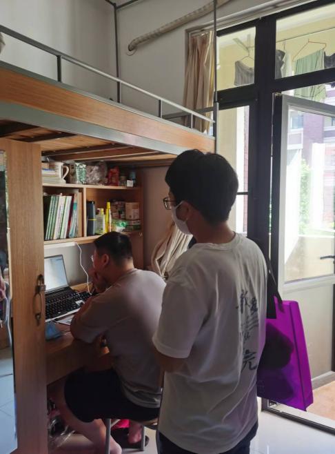 信息技术学院学工办注重通过走寝开展引导教育的工作方法,积极深入学生寝室排摸学生思想动态。19日上午,院党委副书记徐娜带队前往学生寝室看望学生,了解早课出勤情况,并对在校同学的生活给予关心,叮嘱疫情防控相关要求。辅导员还对学生进行了安全教育,同时对宿舍卫生和安全隐患进行了排查和统计,提醒学生宿舍严禁使用违禁电器,按时做好卫生清理,杜绝各类安全隐患,增强身体素质,提高安全意识。