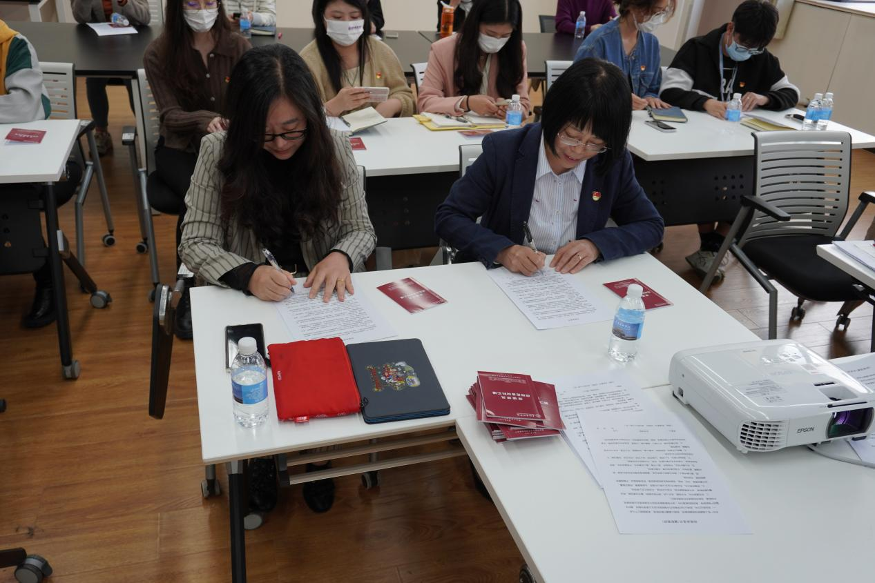 仪式上为每位教职工分发了《师德师风应知应材料汇编》和师德承诺书,并由周英芬书记宣读了师德承诺书,要求广大教师以德立身、以德立学、以德施教,做学生健康成长的指导者和引路人。全体教职工认真学习并签署了师德承诺书。(供稿:国际教育学院)