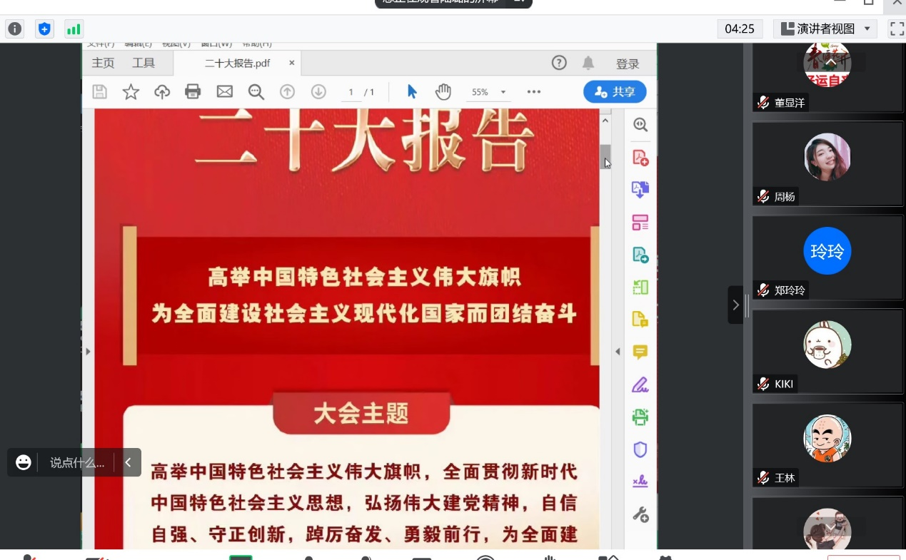 10月26日晚,外国语学院行政党支部召开线上组织生活会,学习党的二十大报告以及《习近平谈治国理政第四卷》。全体党员参加会议,会议由党支部书记陆璐主持。