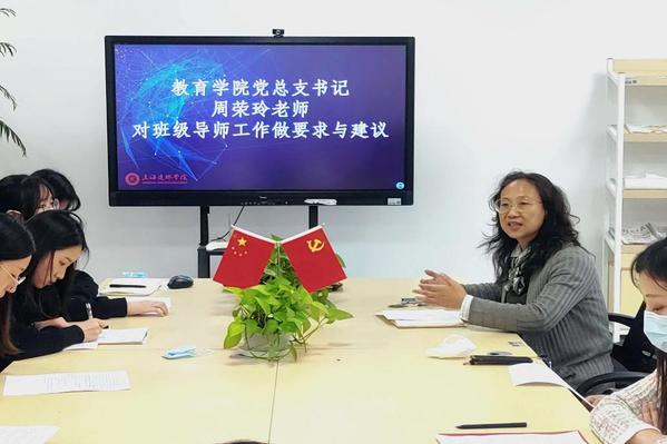 为全面贯彻执行党的教育方针,实现培养具有创新精神和实践能力的高素质应用型人才的教育目标,教育学院于11月3日召开2022级专业导师聘任会。学院院长陈洁、党总支书记周荣玲、学生工作负责人李奕璇,2022级班级导师常诗羽、肖晶、马嘉玉、章莉莉、李小波、谢丹萍以及2022级辅导员、辅导员助理代表、学生代表参加会议。会议由2022级新生辅导员段然主持。