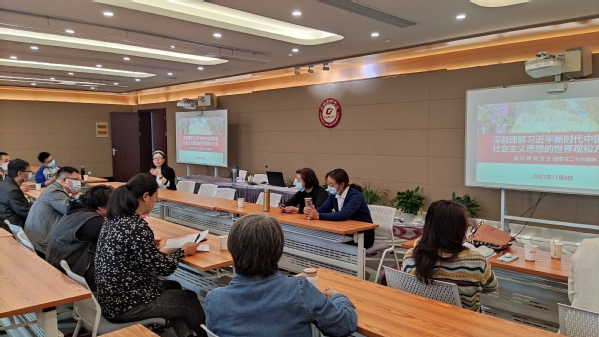 11月3日下午,在图书馆M617,通识教育党支部全体老师在认真聆听了校二十大宣讲团成员、马院老师朱漪教授的《深刻理解习近平新时代中国特色社会主义思想的世界观和方法论》讲座后,进行了热烈的讨论学习。