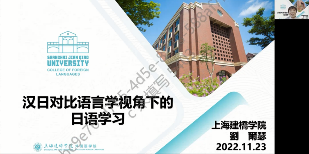 2022年11月23日下午,外国语学院日语系主任刘尔瑟受邀为上海电力大学外国语学院日语专业的学生做了题为“汉日对比语言学视角下的日语学习”的学术讲座。本次讲座主要从从语音、词汇、语法、语用四个语言对比领域进行分析,通过分析两种语言的不同之处,并把各个对比领域与日语中级阶段的学习进行结合,给同学们提供一个新的学习思路。