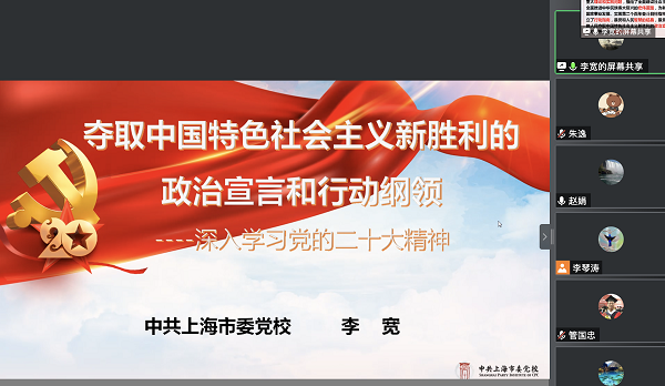 2022年11月24日下午,应科研处邀请,上海市委党校李宽教授为我校教师,进行了题为“夺取中国特色社会主义新胜利的政治宣言和行动纲领讲座”。李宽教授从充分认识党的二十大的重要意义、深入学习深刻领会党的二十大精神、落实好党的二十大作出的决策部署,全面阐释与传递了二十大报告精神与要义,我校教师对于讲座给予了高度评价,并表示收获满满。