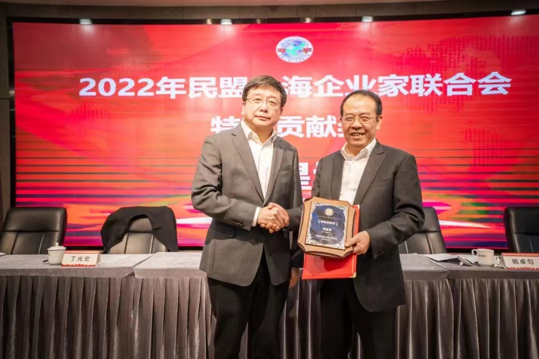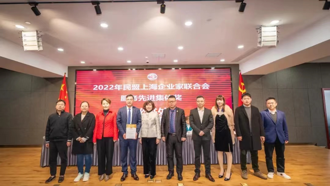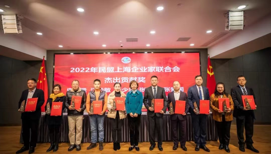 (费俭为民盟上海企业家联合会秘书处颁发“服务先进集体”奖)