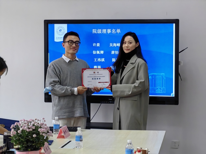 图:理事长张维生、院长刘衔宇为新一届校友理事颁发聘书