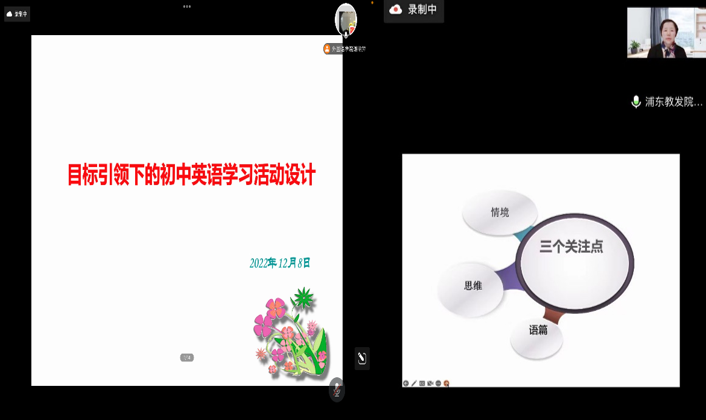 为了进一步提升英语教育方向学生的教育教学能力,并且基于外国语学院的办学特色,把专家请进课堂是教育模式的至关重要的一环。2022年12月8日下午,外国语学院在线上开展了专题讲座,特别荣幸邀请到浦东教育发展研究院初中英语教研员王瑛老师,讲座的主题是关于“基于目标导向下的初中英语学习活动设计”,英语系20级英语教育方向五个班共220位学生聆听了本次讲座。