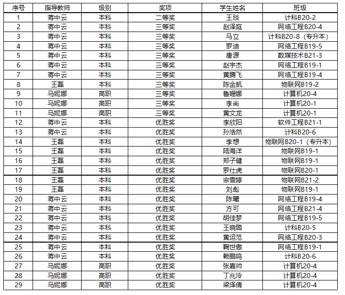 华为ICT大赛隶属于全国普通高校大学生竞赛排行榜,是中国高等教育学会认可的含金量高、参赛价值大的竞赛项目之一,此次比赛在组织之初,就得到了学院领导的高度重视,信息技术学院的矫桂娥副院长,职业技术学院的谷伟院长,对于此次比赛给予了大力的支持。学院充分利用校企合作资源,联合企业专家进行赛前培训,以赛促学,多学院联动,共享资源,积极鼓励学生,力争取得好成绩,并希望通过比赛促进学生的就业技能提升,帮助学生实现就业。比赛指导教师蒋中云老师、王磊老师、马妮娜老师、周亚军老师也按照学院领导的相关指示,联合上海乾韵信息科技有限公司,认真组织培训,努力提升学生的参赛技能,最终取得了较好的成绩。