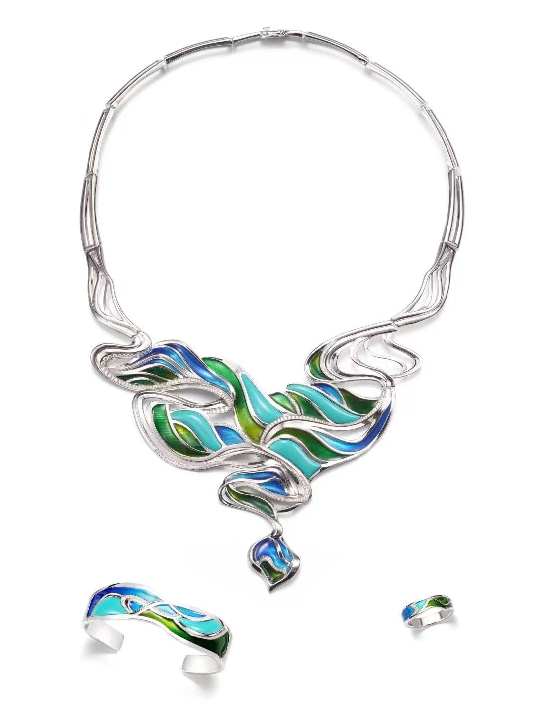 近日,在朵云轩艺术中心开幕的第十四届“玉龙奖”珠宝玉器作品行业竞赛中,我校珠宝学院师生再获佳绩。在此次竞赛的珠宝首饰作品竞赛和手绘作品竞赛(该类目无金奖)中获得金奖3项、银奖13项、铜奖60项、最佳创意奖16项、优秀奖9项,总计获得奖项101项,其中教师报送的四件作品全部获奖——1金2银1铜。