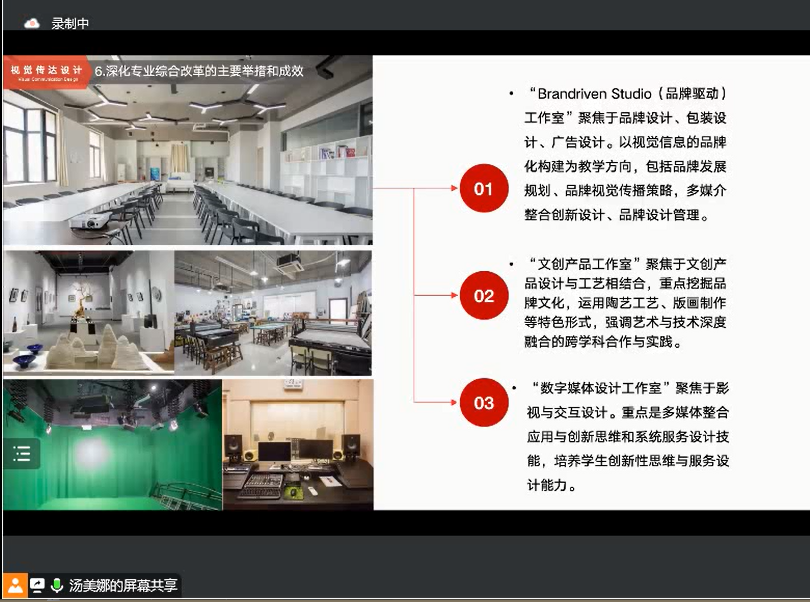 葛洪波院长在致辞中提出,在全国众多相同或相似的视觉传达专业中,要走出上海建桥学院自己的特色,更好进行本专业的建设。汤美娜副院长就专业建设详细情况,通过PPT进行图文并茂的演示,介绍了上海建桥学院艺术设计学院视觉传达设计专业教师发展、学生情况、工作室情况、专业建设历程和发展前景等一流本科专业建设的基本情况。