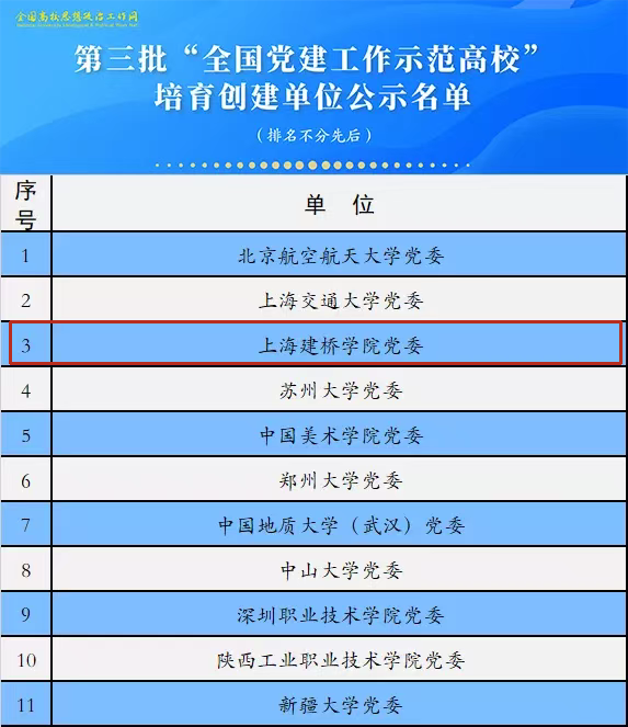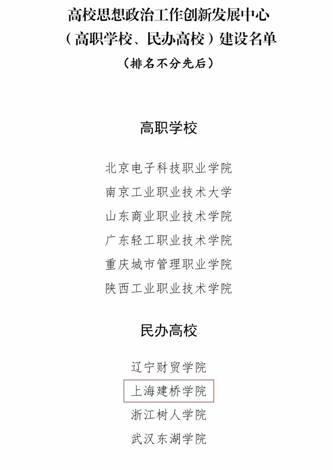 2.党建和思想政治工作取得新突破,上海建桥学院入选第三批“全国党建工作示范高校”培育创建单位,获批教育部高校思想政治工作创新发展中心