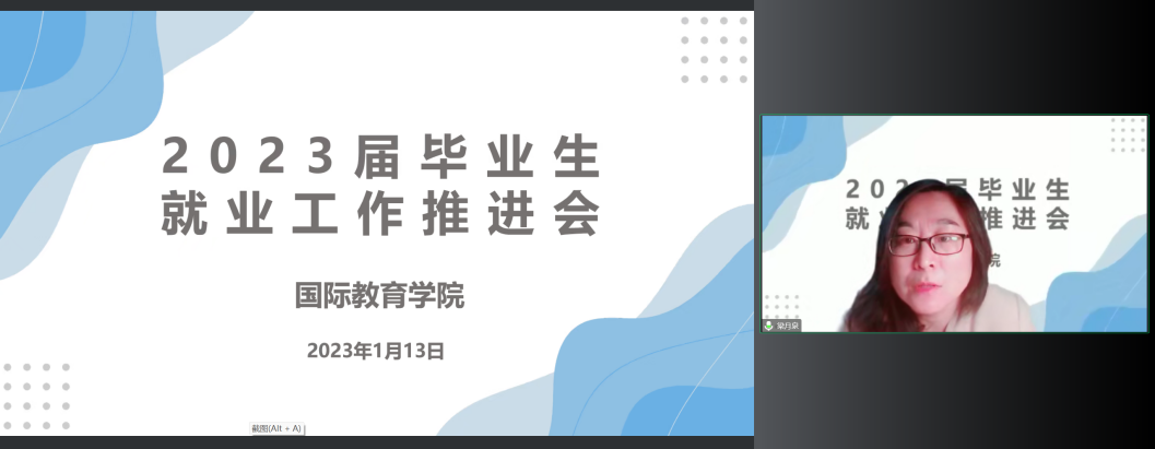 1月13日上午,国际教育学院召开2023届就业工作推进会。梁月泉院长、周英芬书记、刘潇滢副院长、高祺副书记出席,院办主任和23届毕业班辅导员参加,会议由高祺副书记主持。